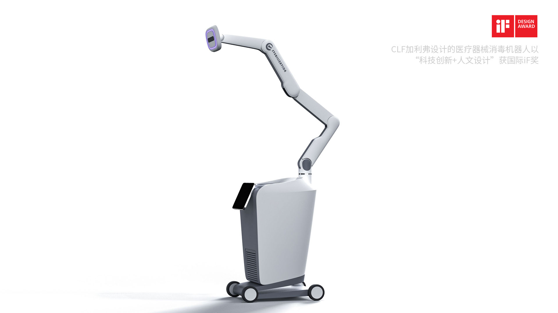 加利弗设计的《机械臂杀菌机器人》,精准破解大型医械消杀效率低、成本高的痛点,以紫外线消杀+智能扫描监测实现高效精准作业,斩获德国IF设计大奖,用国际水准设计赋能医疗创新。
